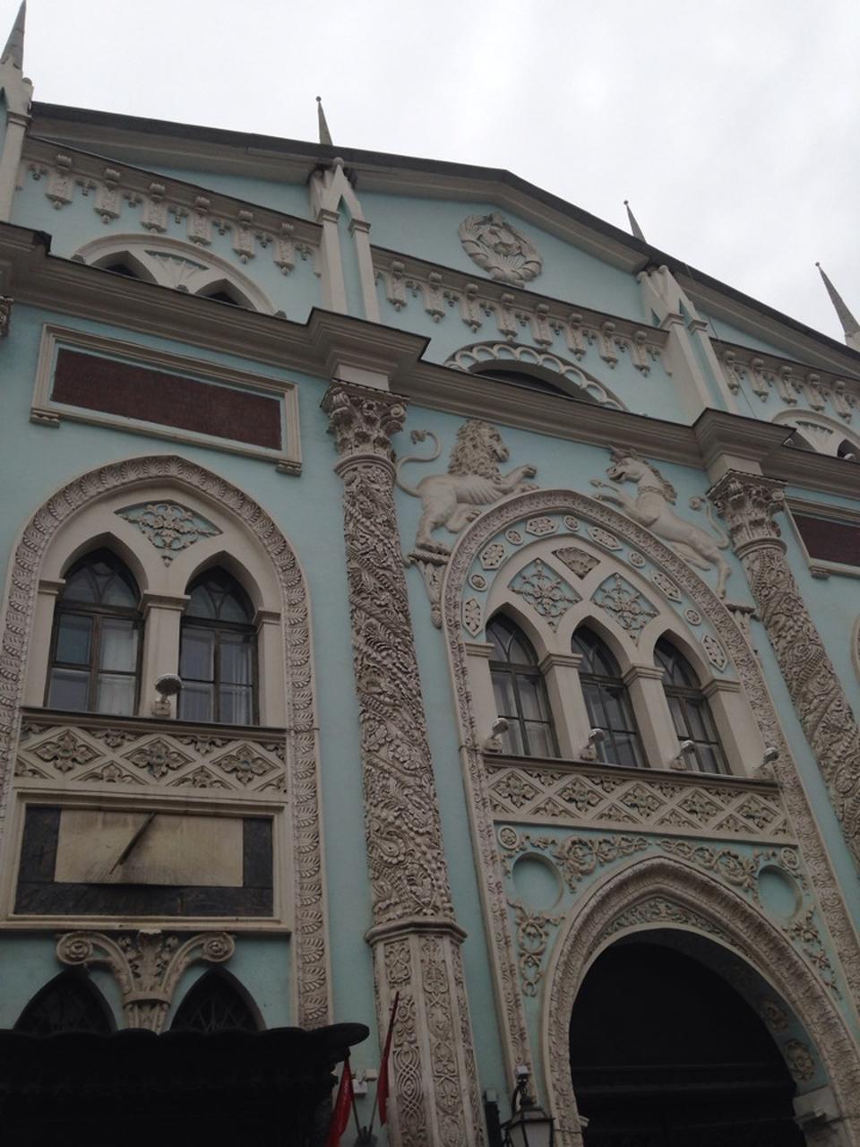 Строение возведено в псевдоготическом стиле. Оно украшено башнями, витыми колоннами с лепниной на конце. Над центральным окном располагаются изображения льва и единорога, как символов власти. Их перенесли сюда с прошлого здания Печатного двора. Фронтон оформлен гербом СССР, хотя изначально был двуглавый орел. На фасаде установлены две таблички с историей сооружения, а также двое солнечных часов.