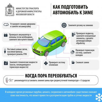 Также автомобилистам рекомендуется проверить готовность машины к работе при минусовых температурах, а именно: проверить ремень ГРМ, систему отопления, тормозную систему, подвески, аккумулятор и клеммы (если необходимо, заменить или купить новый).