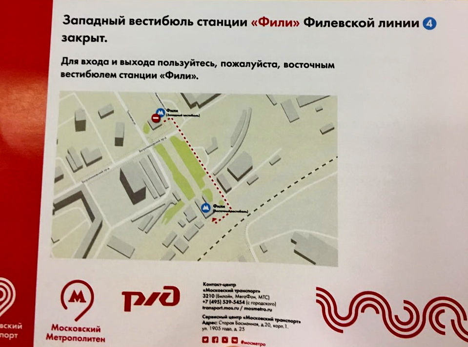 Западный вестибюль станции «Фили» закроют на этих выходных – 16 и 17 ноября.
