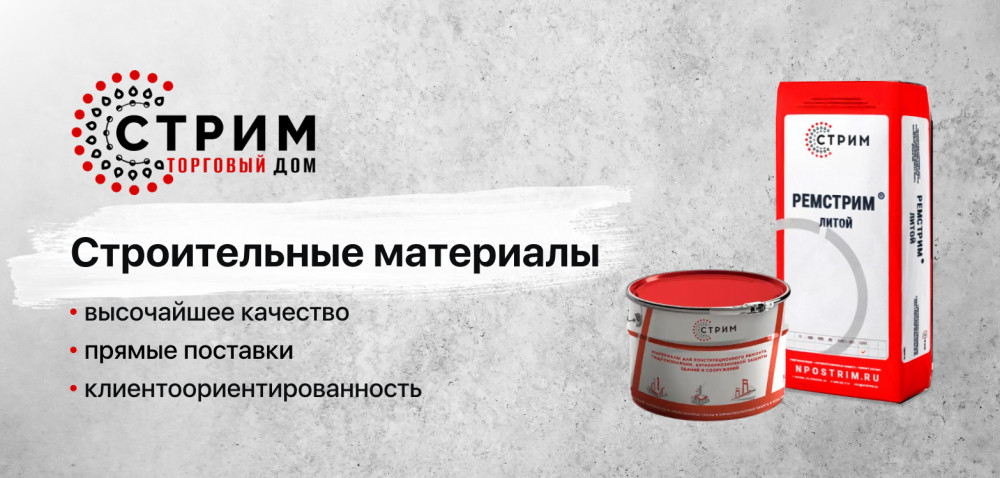 ТД СТРИМ – специализированный дилер российского завода, который разрабатывает и производит стройматериалы с 2002 года.ТД СТРИМ поставляет стройматериалы для ремонта бетона, гидроизоляции, обеспыливающие, антикоррозийные, антисептические и другие составы. К нам обращаются при строительстве, сносе, ремонте и проектировании зданий и сооружений. Мы помогаем клиентам в качественном импортозамещении. Наши преимущества: качество уникальных материалов, скорость поставки и максимальная клиентоориентированность.
