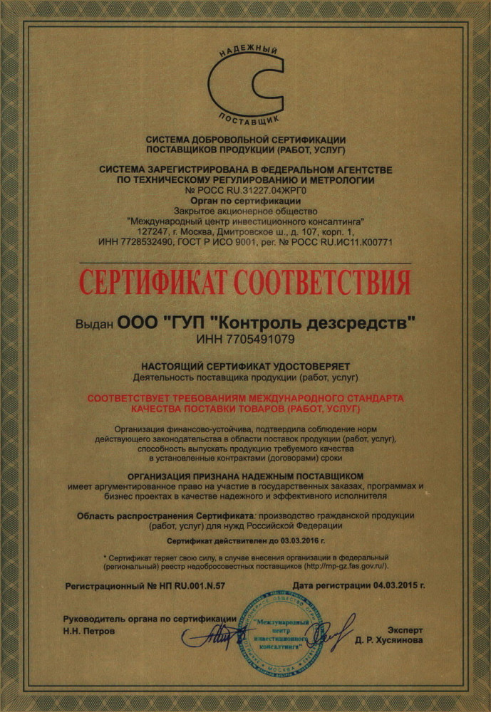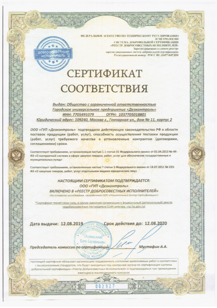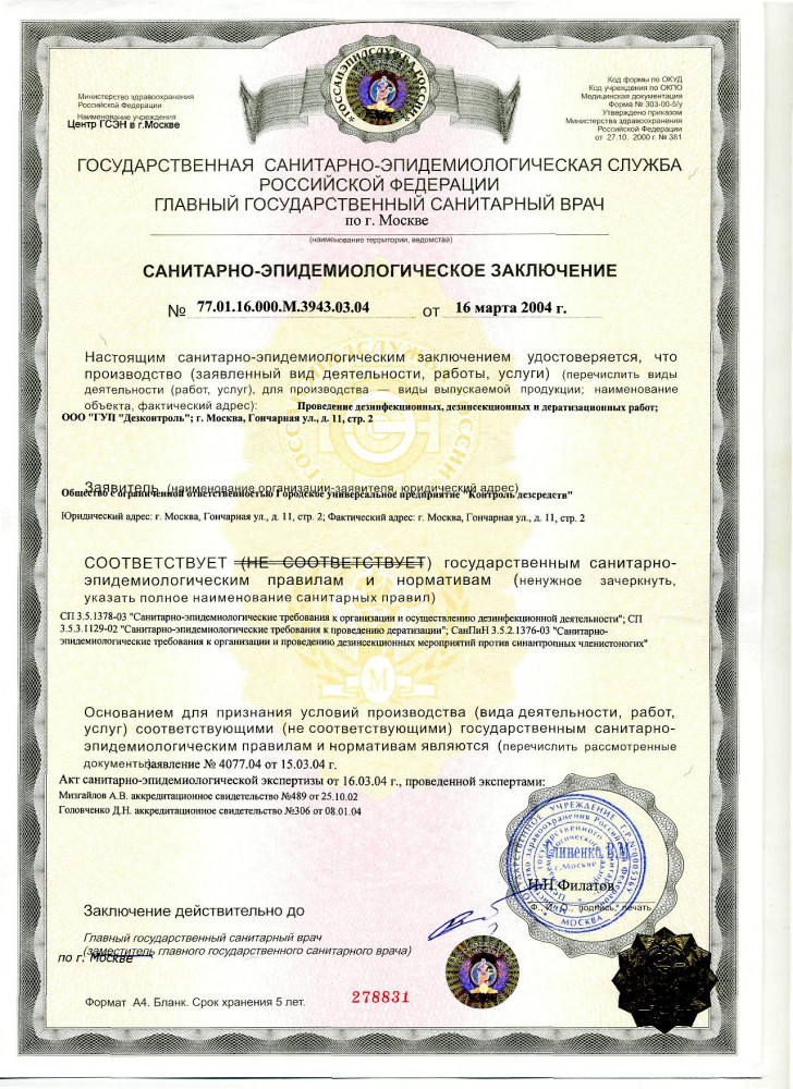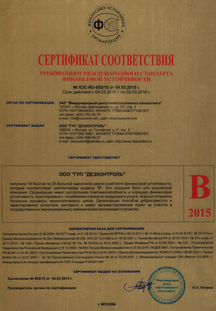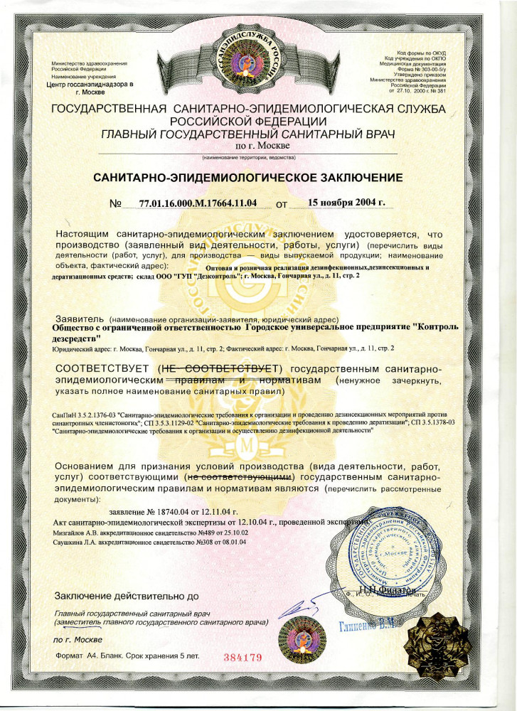 ГУП «Дезконтроль» является правопреемником Государственного унитарного предприятия «Контроль дезсредств», основанного 1 апреля 1999 года. Оно осуществляет комплексные поставки товаров для дезинфекции и стерилизации и оказывает услуги для обеспечения санитарно-эпидемиологического благополучия населения в соответствии с Федеральным Законом № 52 от 12 марта 1999 года.