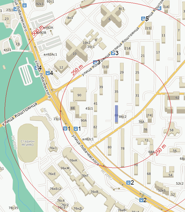 От метро Новаторская : автобус 616 - 9 остановок, автобус с17 - 11 остановок