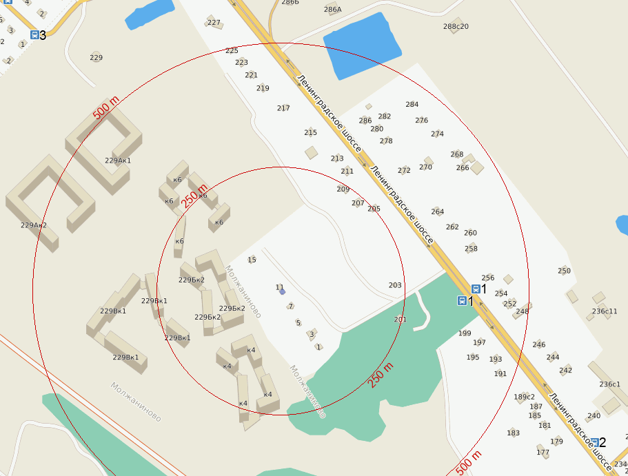 От метро Планерная : автобусы 484, 865 - 13 остановок