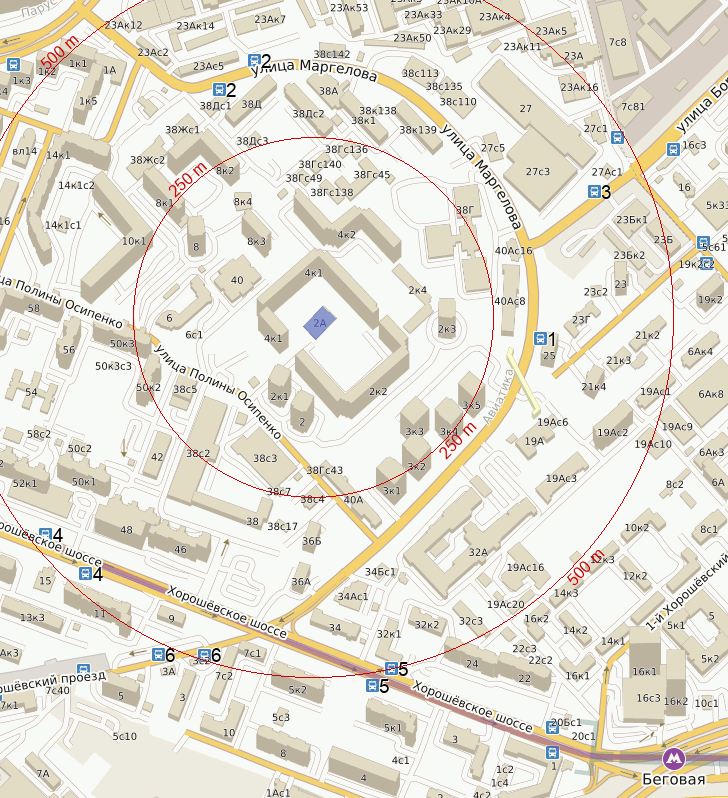 От станции Беговая : автобусы с23, 345 - 2 остановки, автобус 27 - 3 остановки