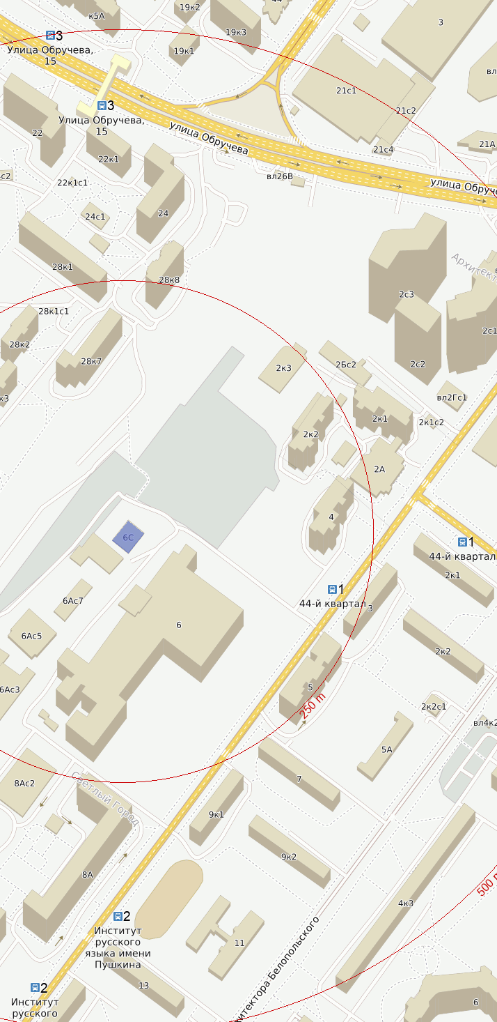 От метро Беляево : автобус с954 - 4 остановки