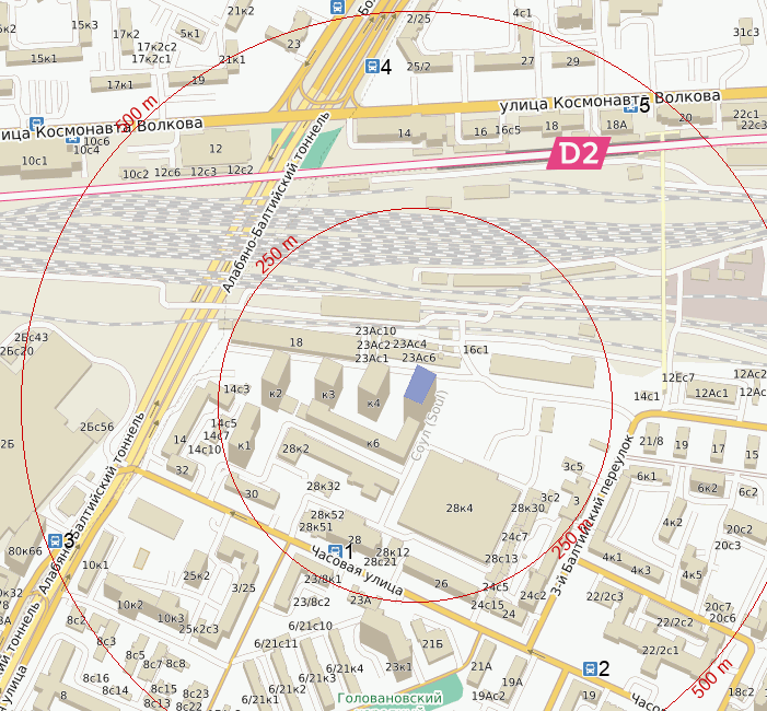 ОТСЮДА СЮДАТерритория и границы расположения мест и объектов инфраструктуры, находящихся в 6-минутной пешеходной доступности от указанного адреса.